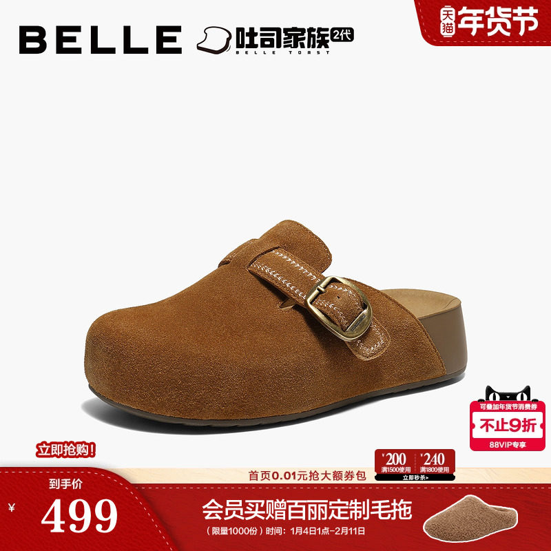 百丽厚岛吐司2代勃肯鞋女26春新款厚底增高可外穿包头拖鞋F3G1DA