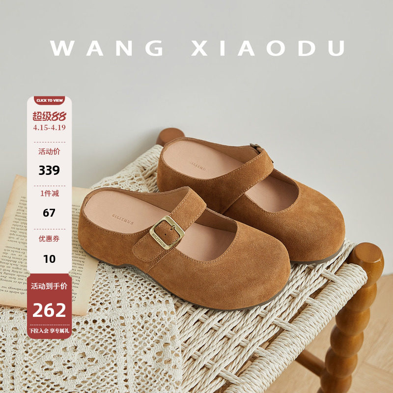 原创【王小毒】日光浮岛●内增高5cm~绒面包头拖鞋女复古勃肯半拖