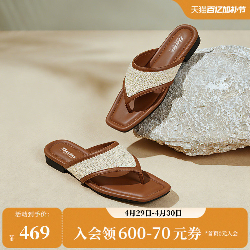 Bata布达佩斯编织人字拖女2026夏商场新款度假风罗马拖鞋63213BT6