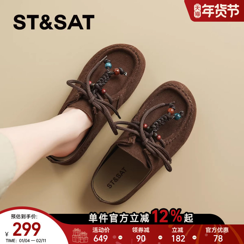 星期六真皮厚底勃肯鞋半拖鞋女2025新款秋季复古软底袋鼠鞋懒人鞋