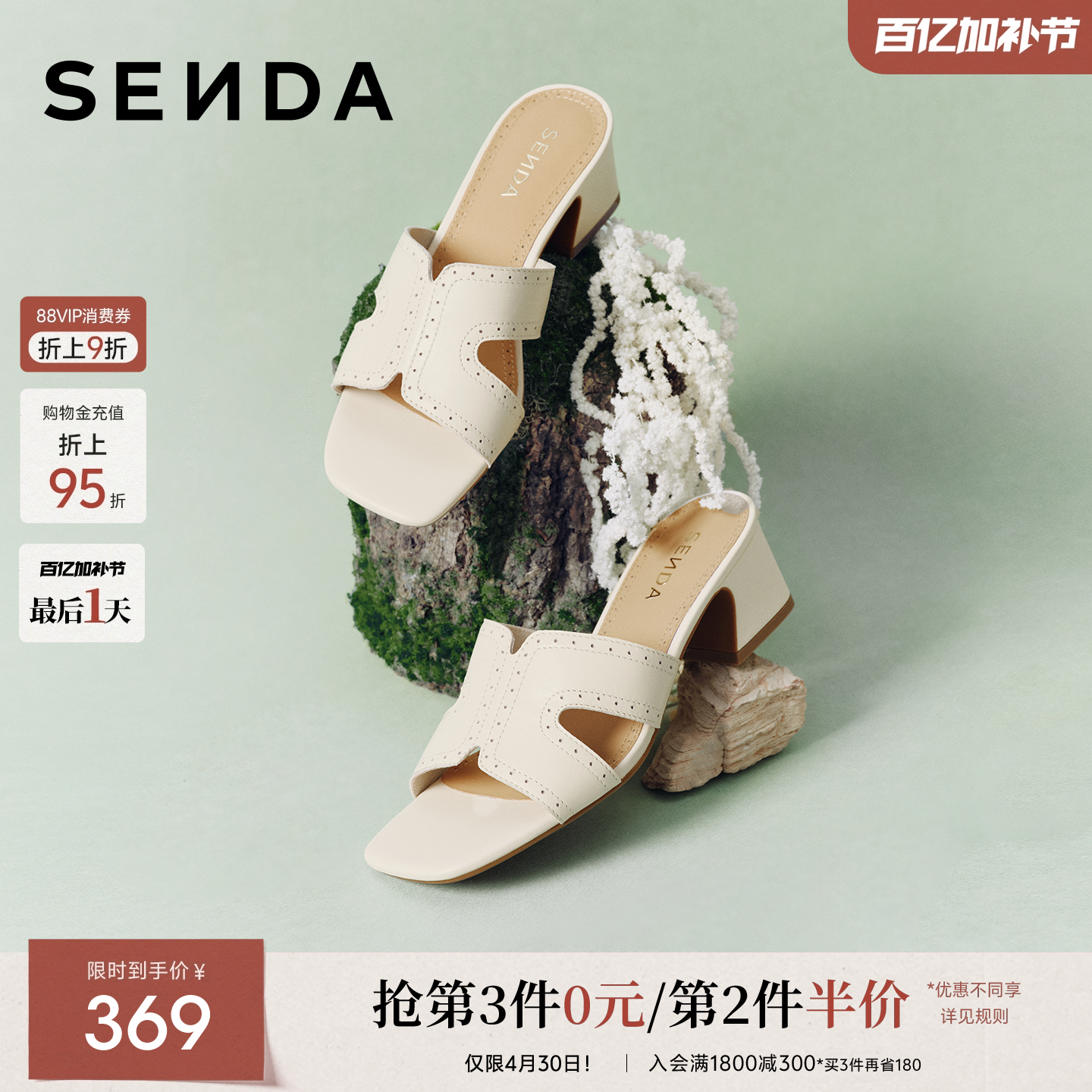 【母亲节礼物】森达时装凉鞋女鞋夏季新款羊皮时尚粗跟外穿凉拖鞋
