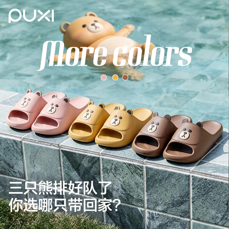 朴西新款小熊凉拖鞋女士夏季轻盈简约居家室内静音防滑情侣拖鞋男
