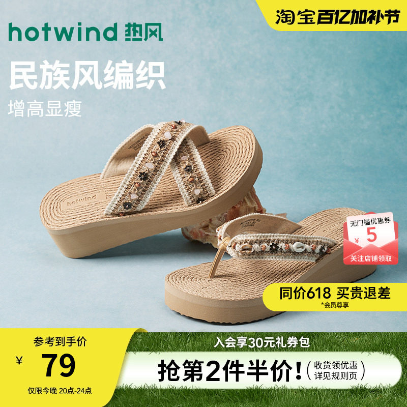 热风厚底拖鞋女2026年夏季新款一字拖外穿百搭人字拖海边度假凉鞋