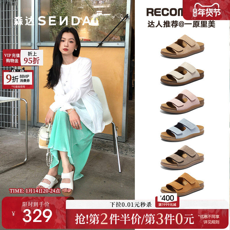 张昕懿明星同款森达麻薯勃肯拖鞋女2025夏外穿超软厚底休闲凉拖鞋