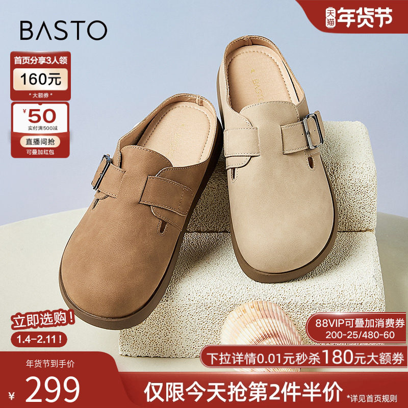 百思图夏季商场新款复古勃肯鞋外穿拖鞋女懒人一脚蹬单鞋BG188BM4