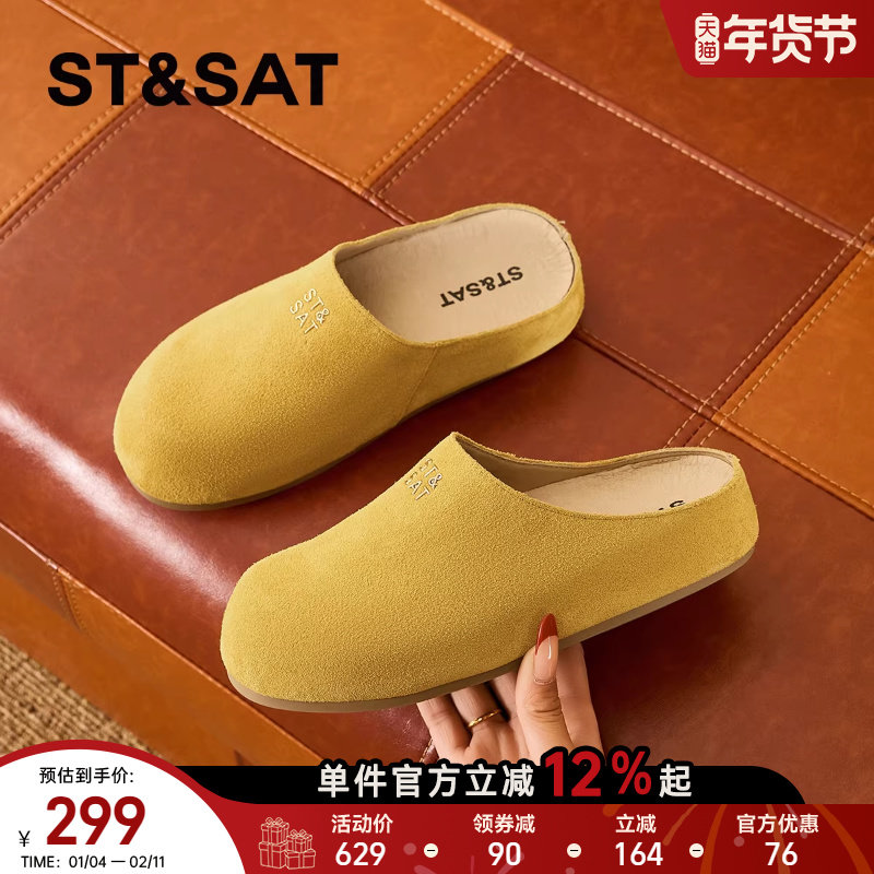 星期六真皮包头勃肯鞋女2025新款厚底软底休闲包头半拖鞋法式百搭
