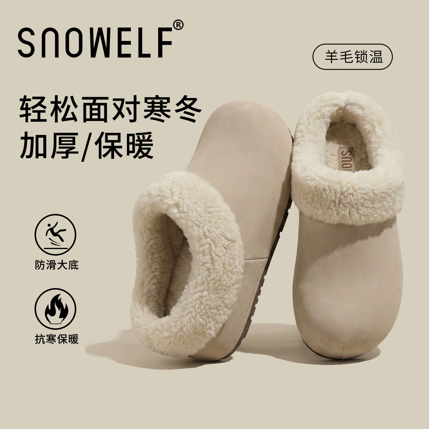 白色毛毛拖鞋外穿女2025新款冬季厚底增高雪地靴包头保暖羊毛棉鞋