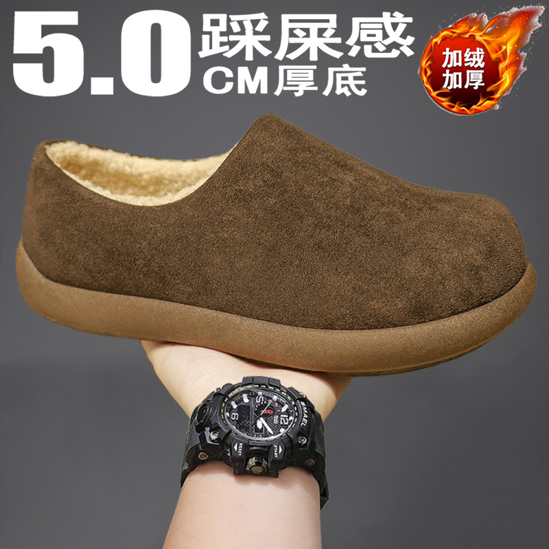勃肯棉拖鞋男款冬季2025新款厚底防滑耐磨加绒保暖棉鞋一脚蹬半拖
