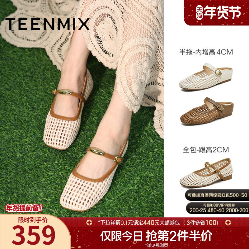 天美意内增高编织度假包头半拖鞋女玛丽珍凉鞋浅口单鞋夏季新款