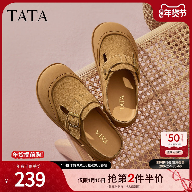 TATA他她复古包头拖鞋女鞋厚底休闲外穿凉鞋2025夏季新款SPP01BH5