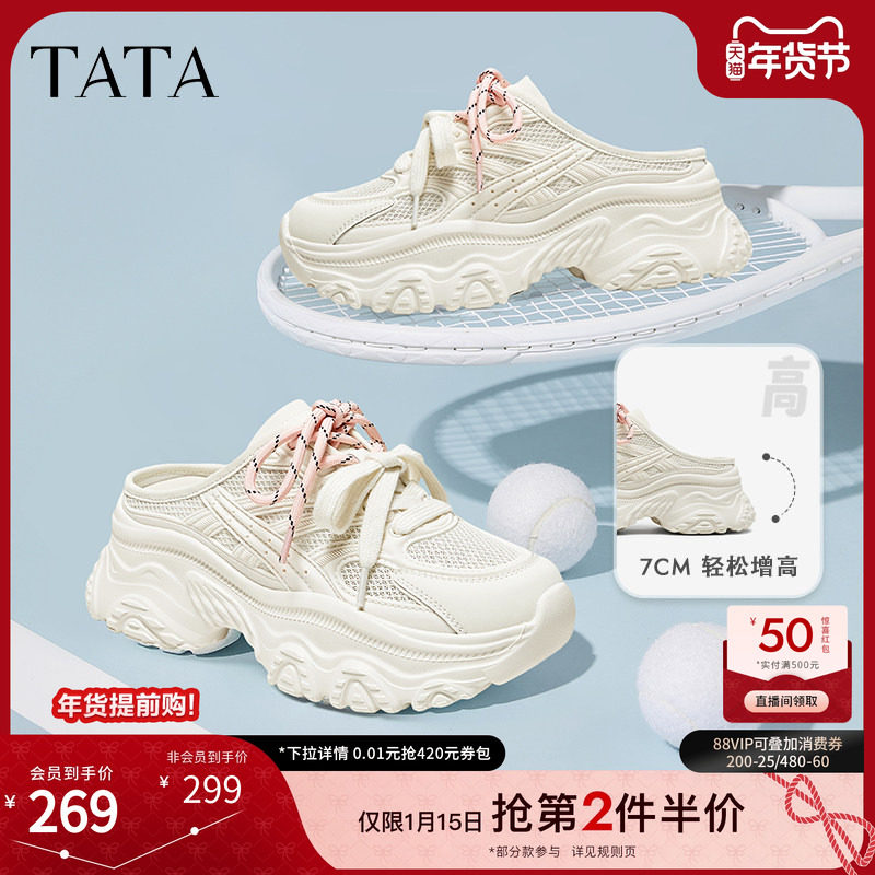 TATA他她厚底休闲老爹鞋女鞋透气运动包头拖鞋2025年新款CYL03BH5