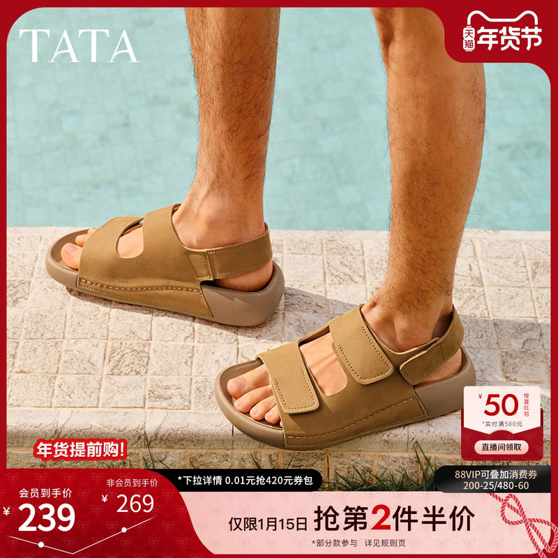 TATA他她复古厚底凉鞋男鞋休闲运动沙滩鞋凉拖鞋新款鞋子AAD01BL5