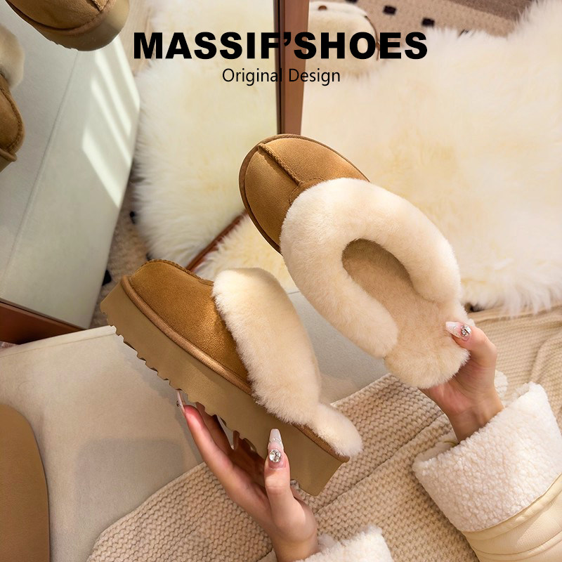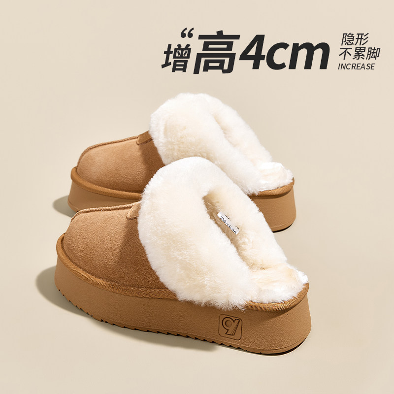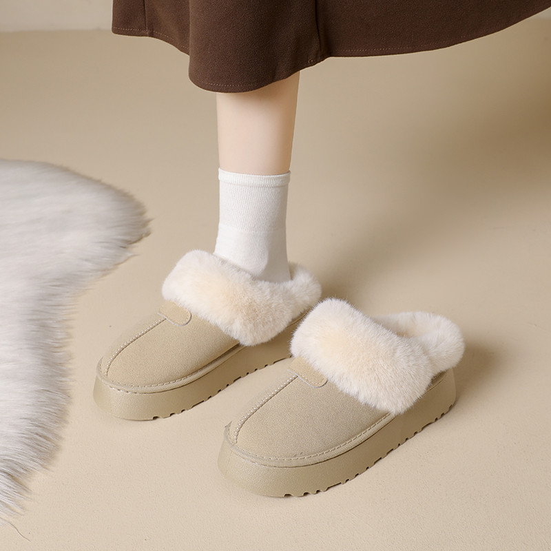 品牌清仓真皮加绒毛毛鞋女厚底勃肯半拖鞋2025冬季加厚棉鞋雪地靴
