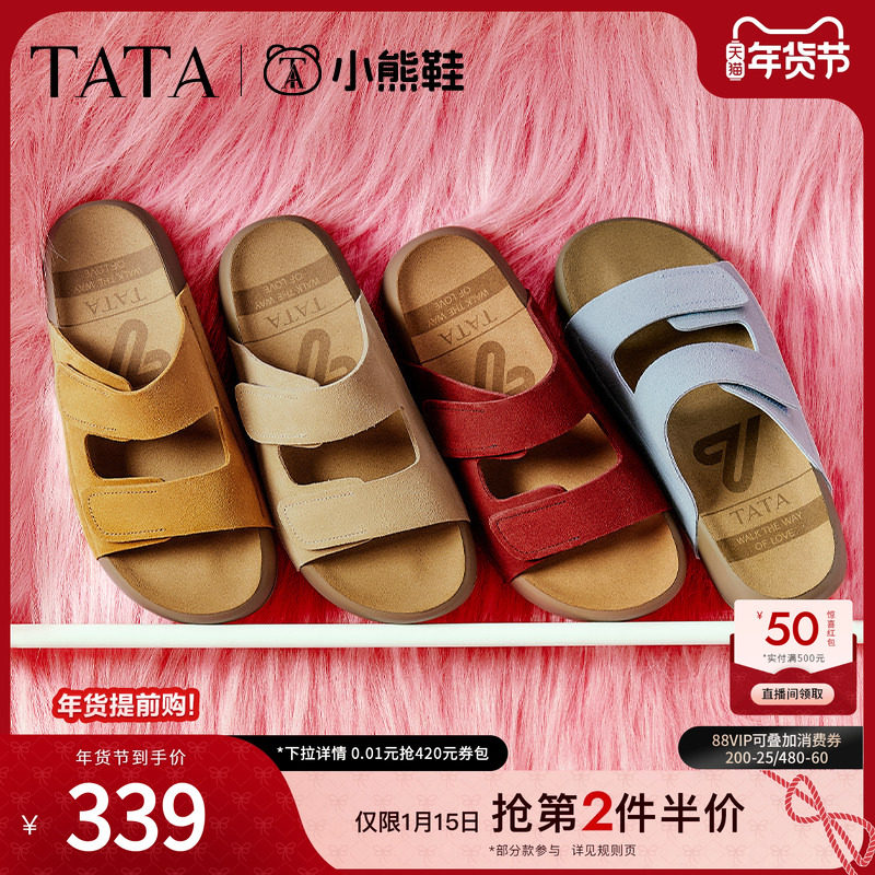 TATA他她女鞋2026春季新款勃肯鞋女外穿时尚拖鞋后空凉鞋KZA01AH6
