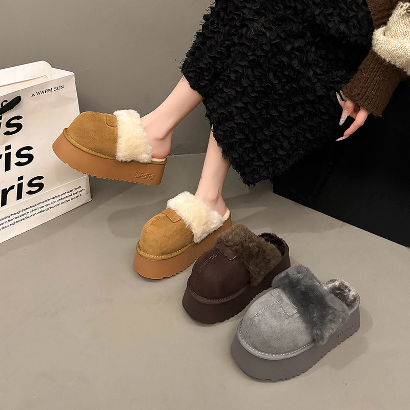 厚底毛毛包头半拖鞋女冬季加绒保暖雪地靴外穿一脚蹬棉拖