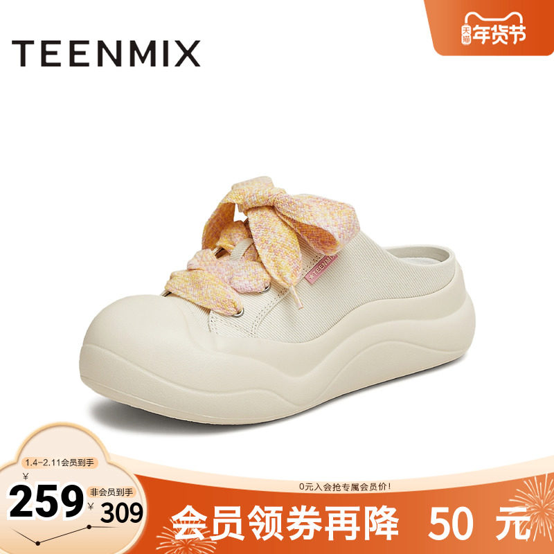 天美意2025新款商场同款前包后空半拖鞋女休闲板鞋CP535BH5