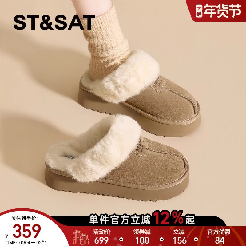 星期六半拖雪地靴女款2025新款秋冬保暖厚底加绒防滑毛毛绒棉拖鞋