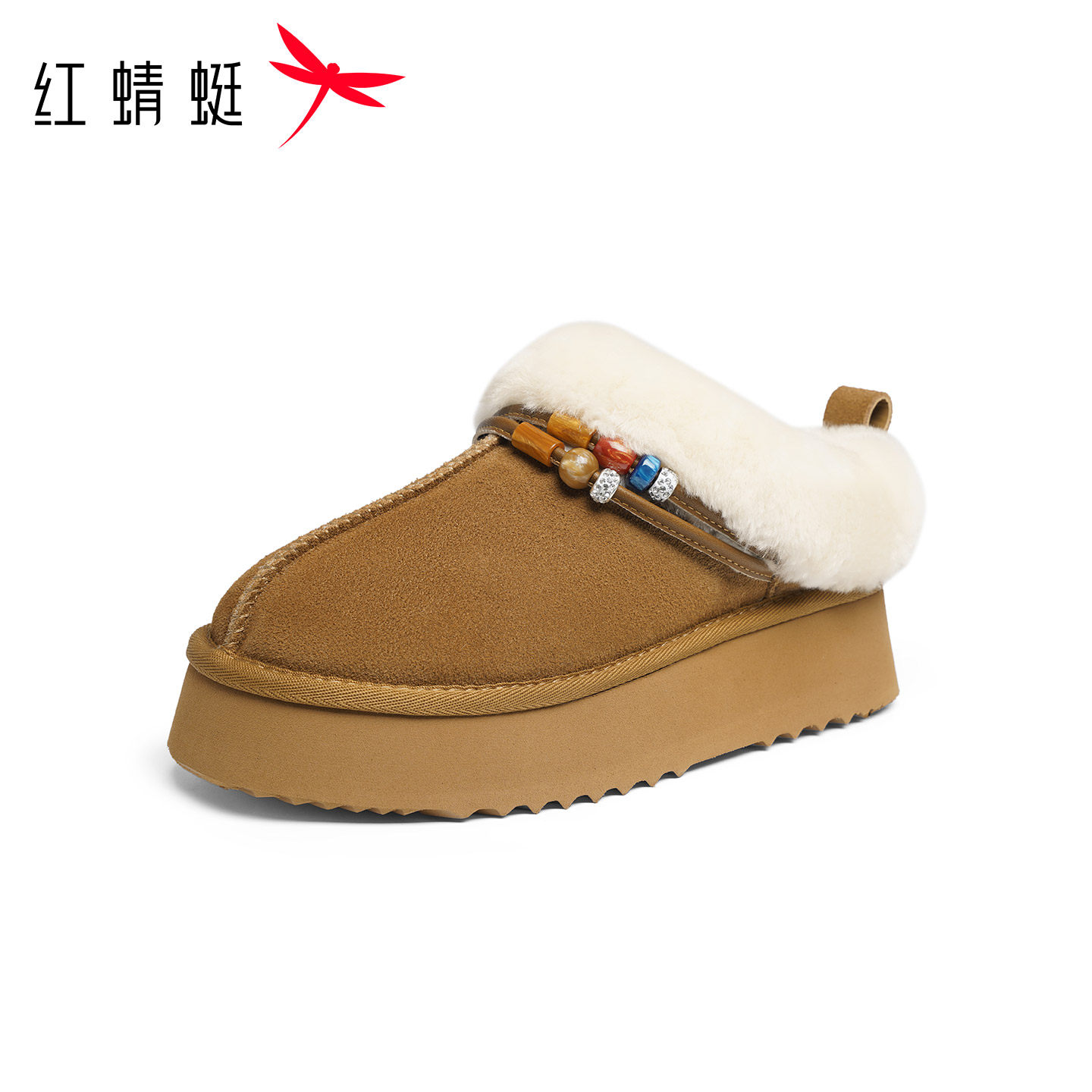 红蜻蜓baby同款时尚雪地靴冬季加绒包头厚底棉鞋保暖外穿拖鞋女鞋