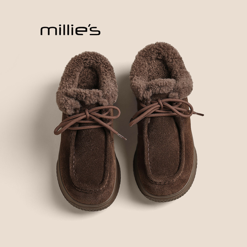 MILLIE'S/妙丽秋冬款新款绒面勃肯鞋2025冬毛毛鞋女松糕跟棉拖鞋