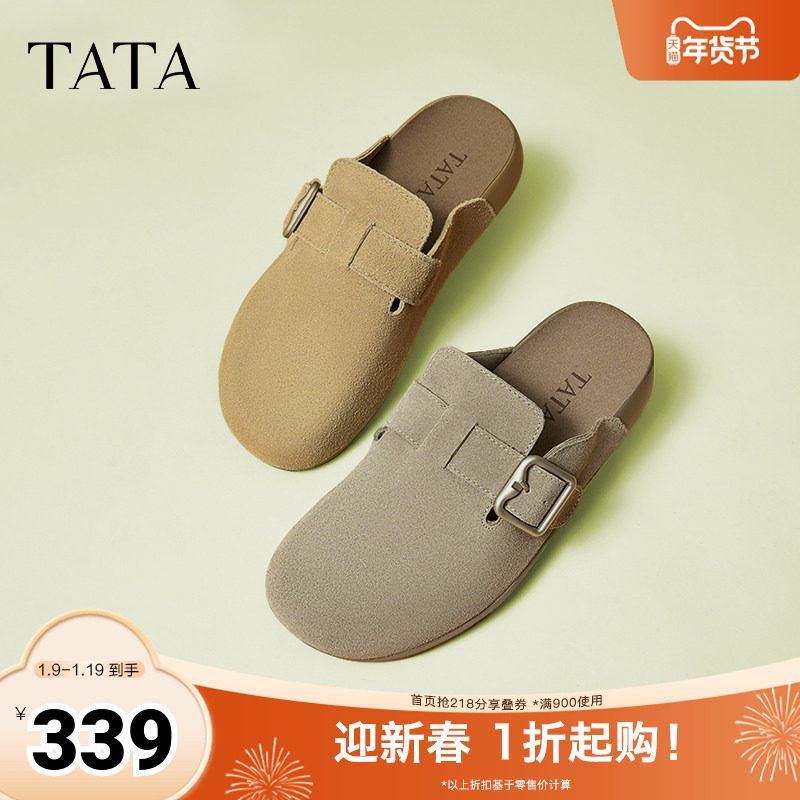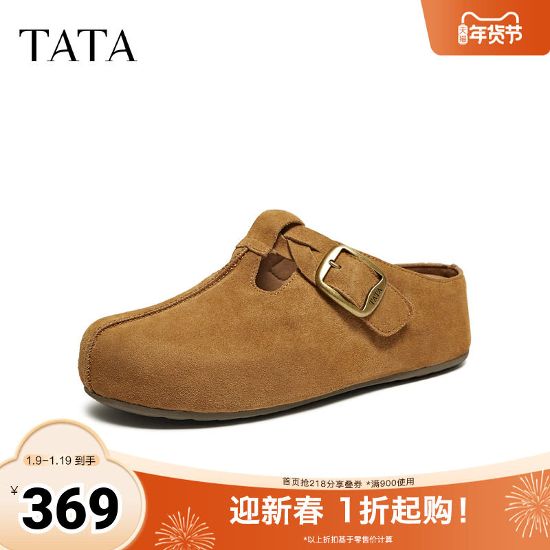 TATA他她复古勃肯鞋女秋季新款休闲包头拖鞋女鞋穆勒单鞋CGW03AH5