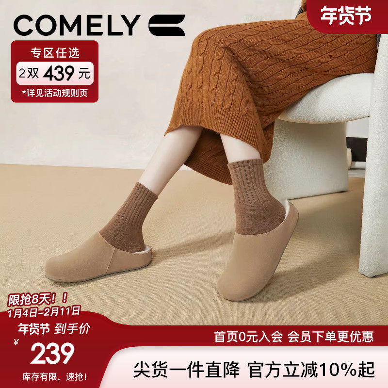 康莉加绒勃肯鞋女2024年冬季新款加厚保暖复古毛毛鞋半拖鞋穆勒鞋