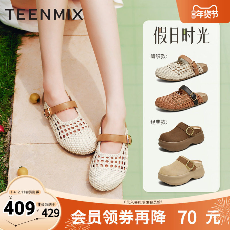 天美意2025新款商场同款包头拖鞋镂空复古女勃肯鞋CHS39BH5