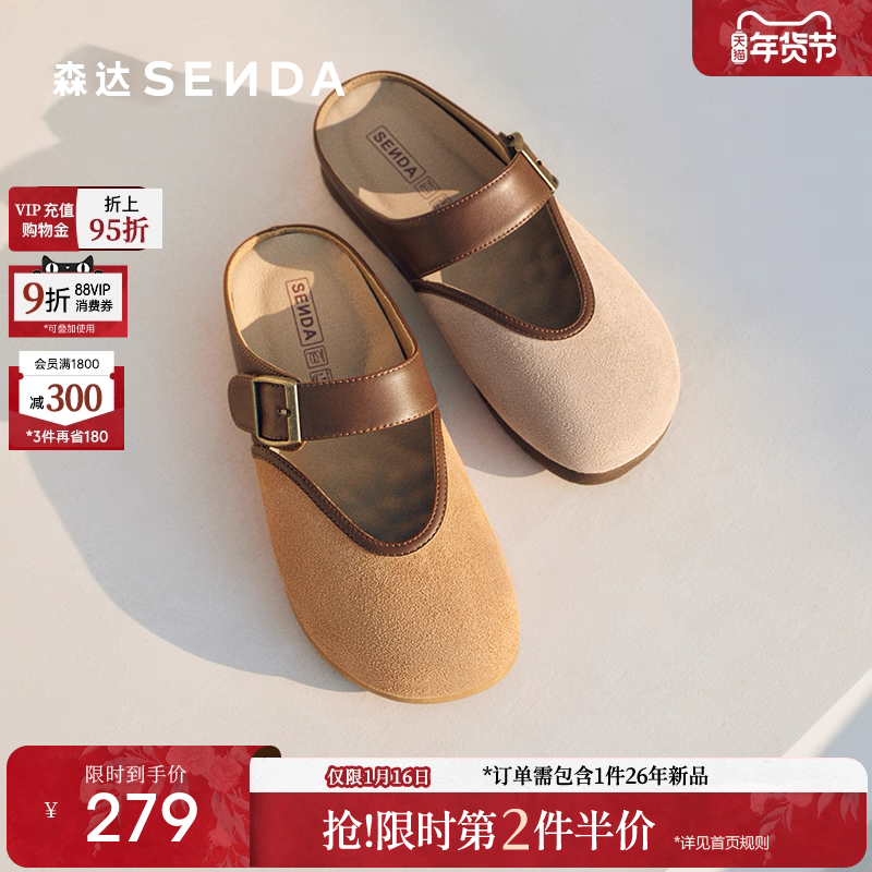 森达勃肯鞋女款2025夏新复古简约外穿平底鞋休闲凉拖鞋ZTG16BH5