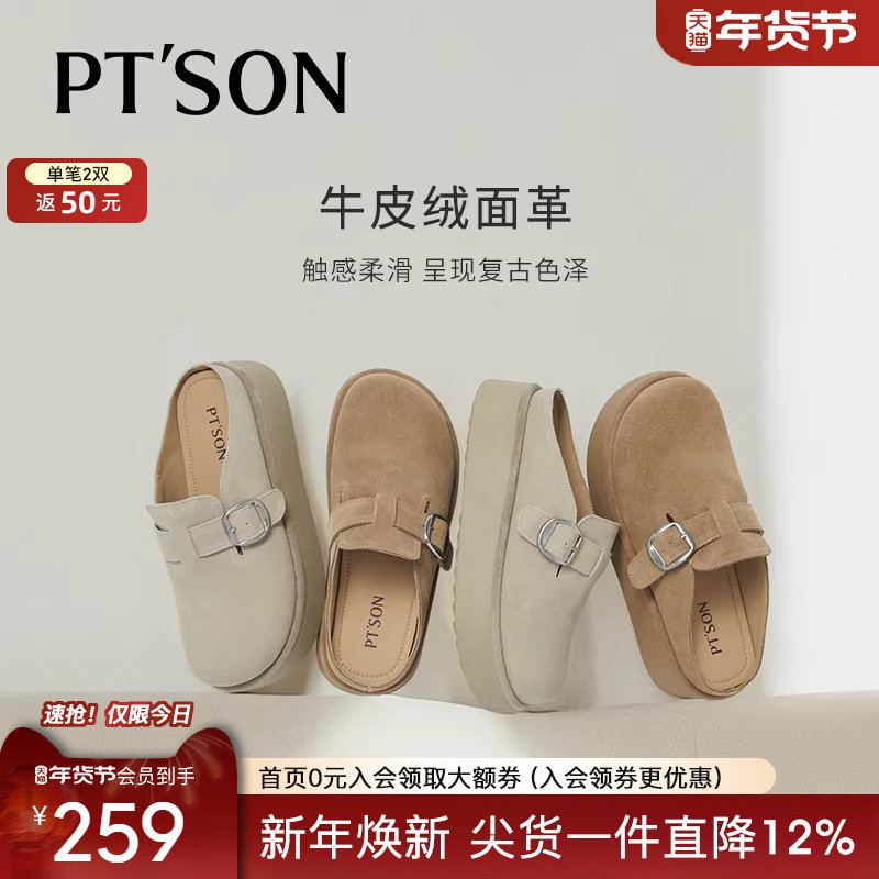 百田森厚底勃肯鞋女2025新款拖鞋女款外穿真皮软底一脚蹬半包拖鞋