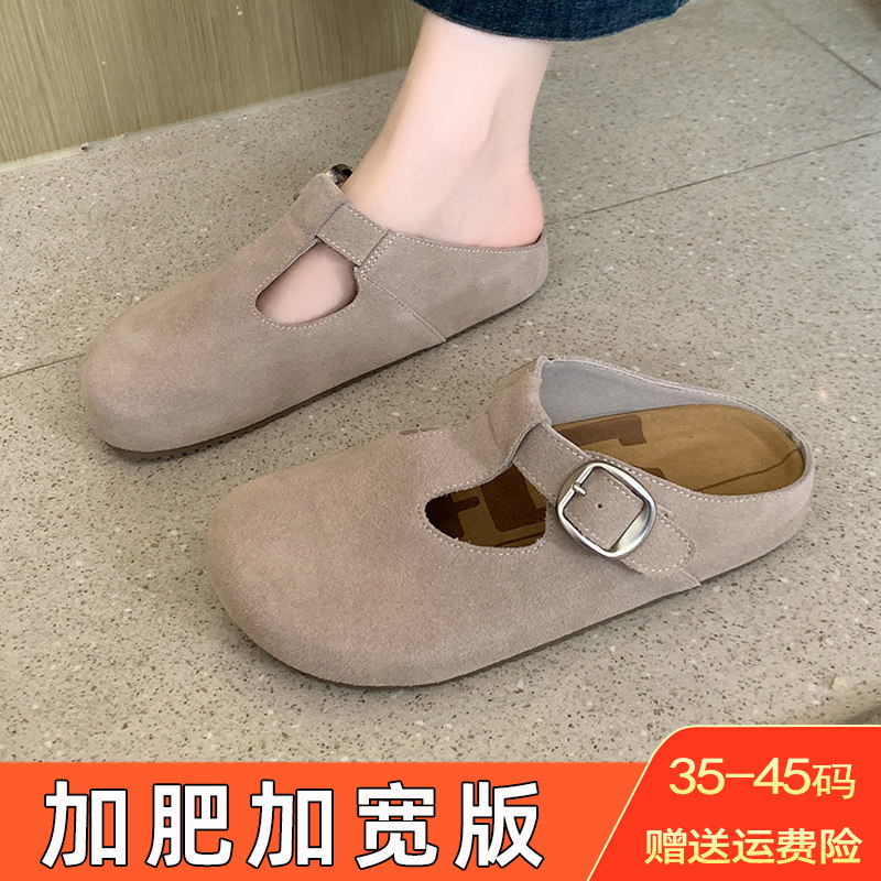 勃肯鞋半拖女夏外穿前掌加宽头肥脚胖包头拖鞋博肯大码女鞋41到43