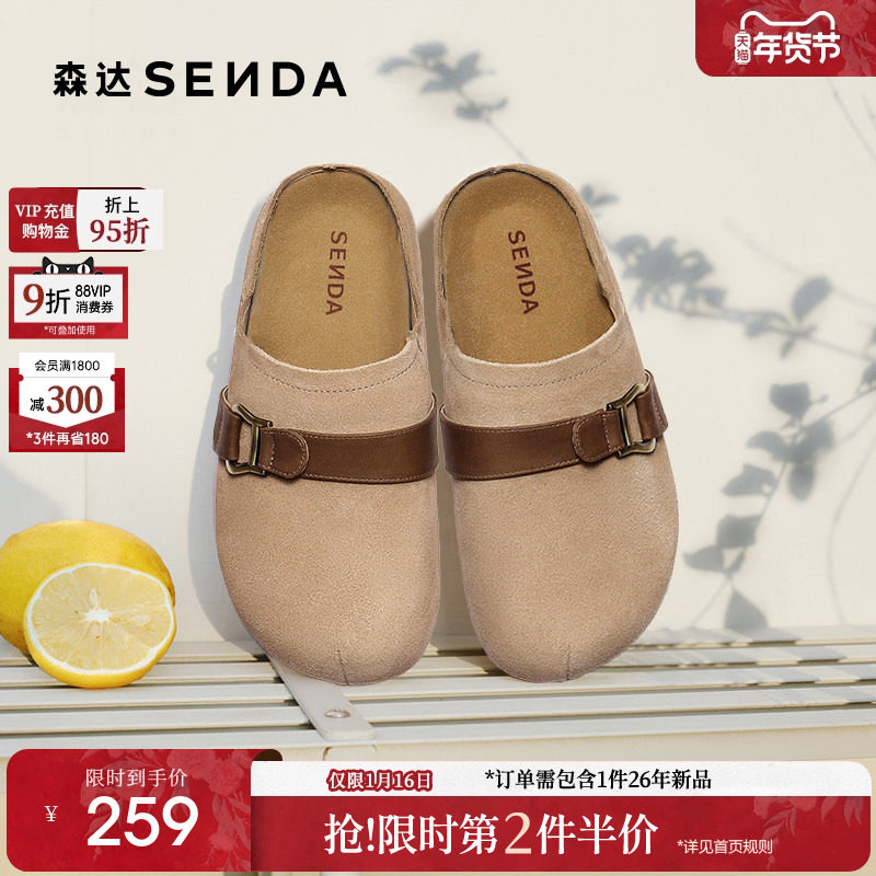 森达勃肯半拖鞋女款2025秋新舒适外穿包头复古厚底休闲鞋ZTH02CH5