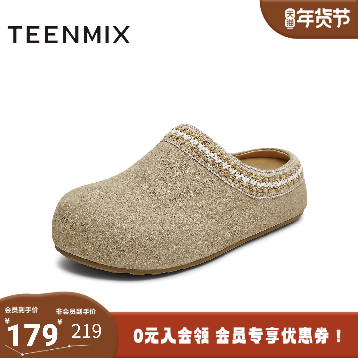 天美意2025夏新款商场同款复古百搭包头拖鞋女勃肯鞋BL451BH5