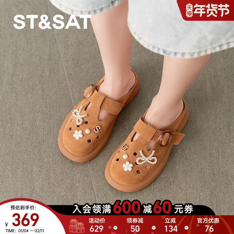 St&Sat/星期六春秋厚底增高勃肯鞋一脚蹬包头半拖鞋女SSD1114C5W