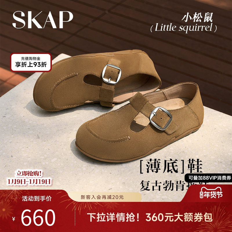SKAP小松鼠勃肯凉拖鞋圣伽步2025秋季新款女真皮薄底外穿复古凉鞋