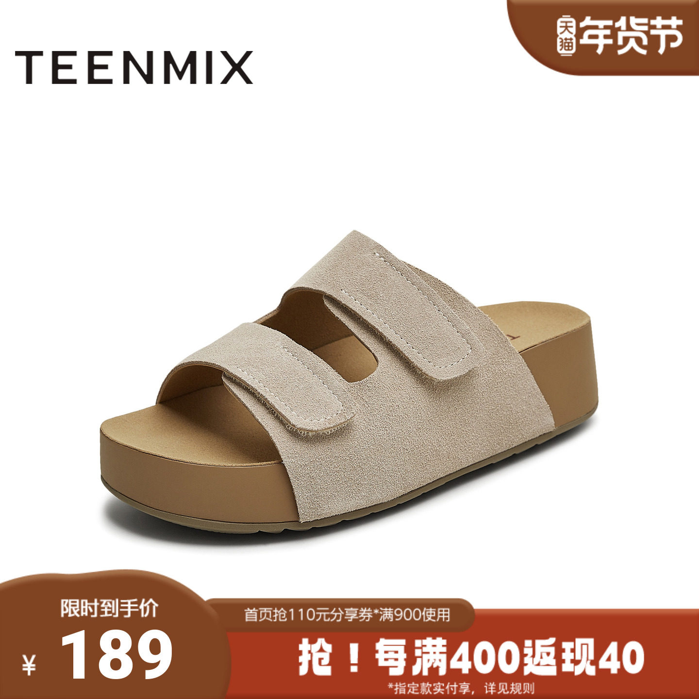 天美意秋新款魔术贴厚底拖鞋外穿沙滩鞋女勃肯拖鞋KK064CT5