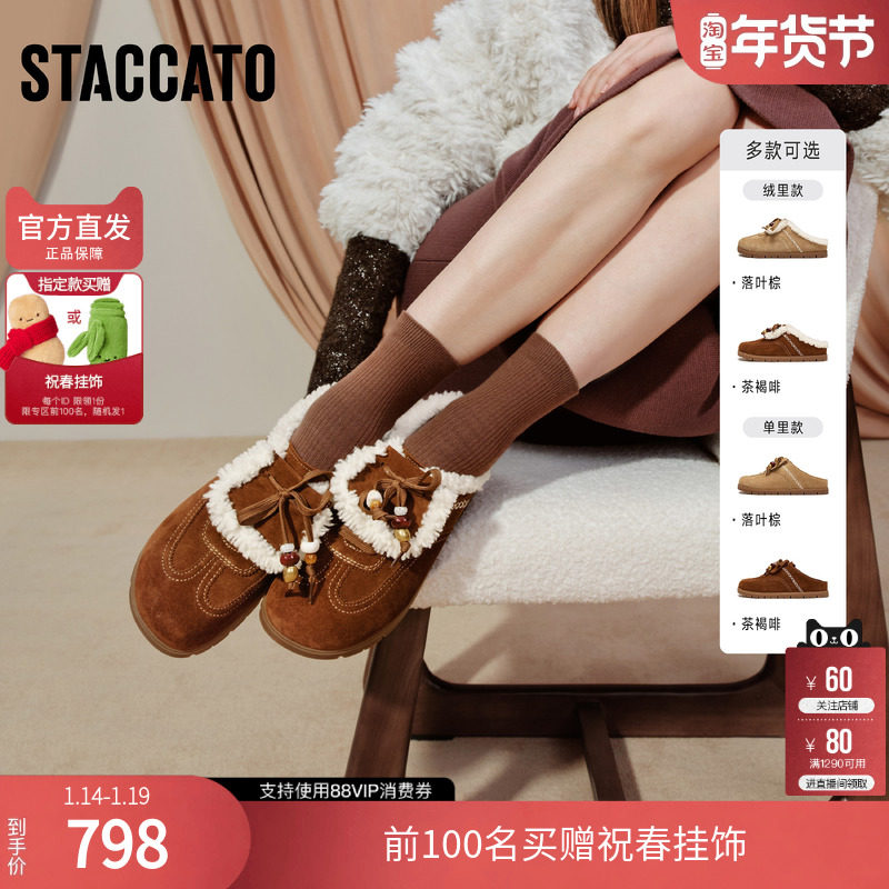 思加图2025冬季新款雪绒绒复古勃肯鞋大头鞋厚底半拖鞋女EIM02DH5