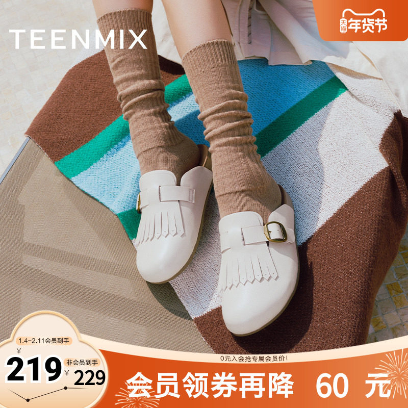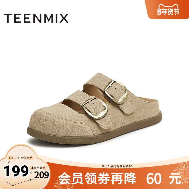 天美意复古厚底勃肯鞋包头半拖鞋女休闲单鞋2025秋季新款CHS33AH5