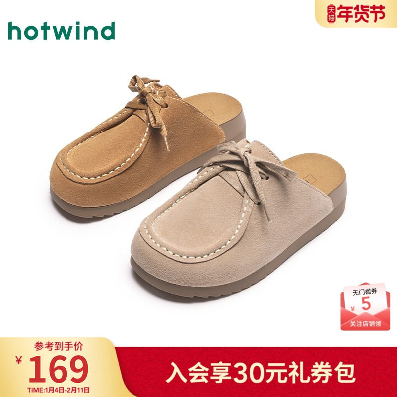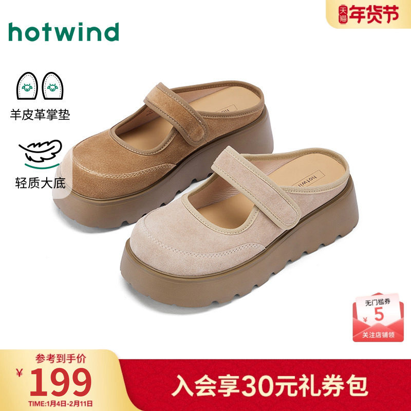 热风复古勃肯鞋女款2025年秋季新款户外包头半拖鞋厚底小个子女鞋