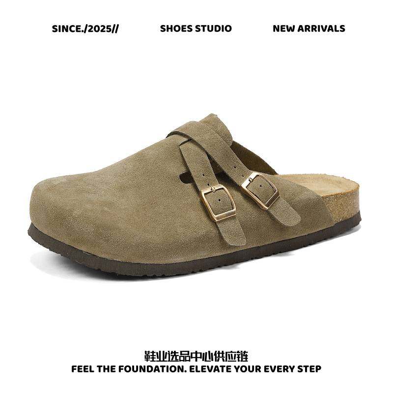 皮带扣低跟平底勃肯鞋女磨砂皮2026年春夏新款拼接撞色包头拖鞋潮