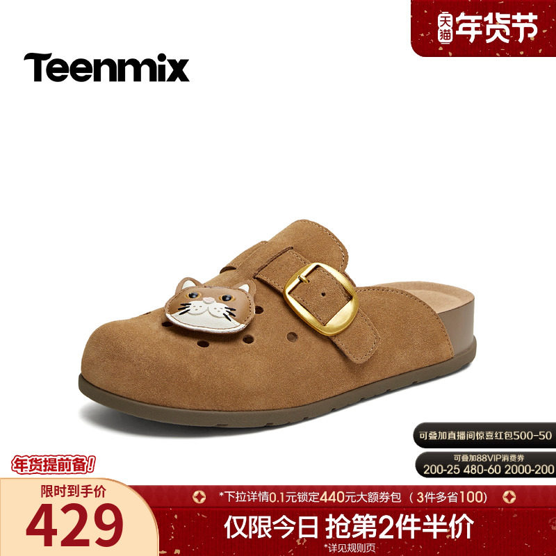 天美意厚底洞洞勃肯鞋包头半拖鞋女外穿凉拖鞋2026夏新款6Y831BH6