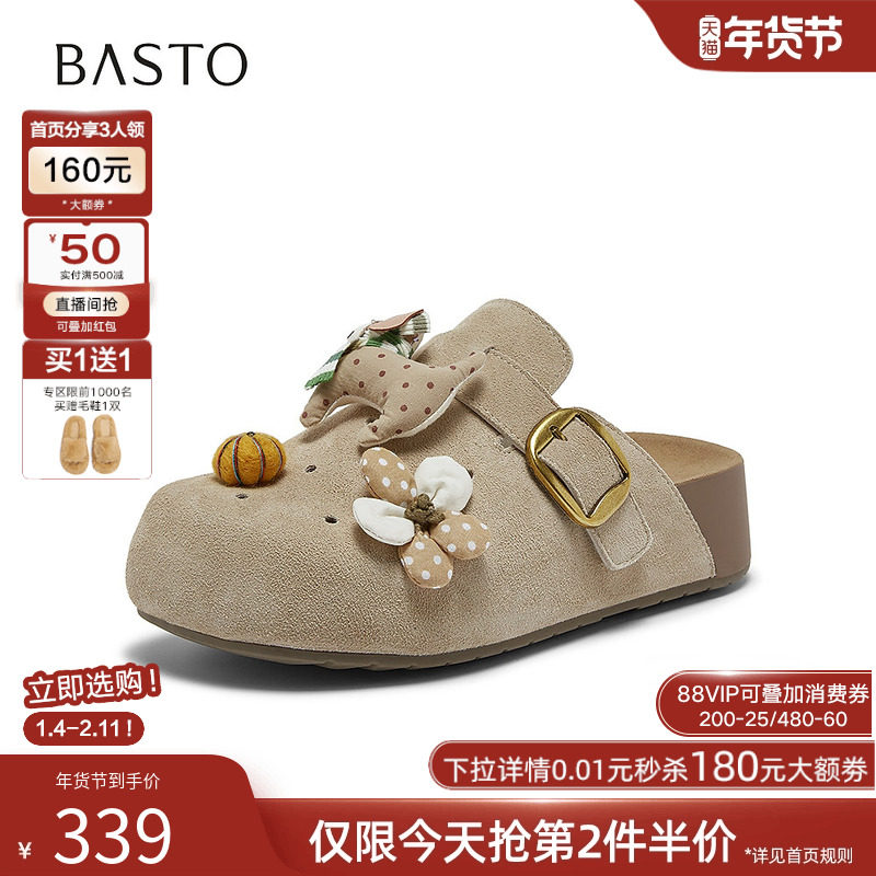 百思图2026夏季新款卡通洞洞鞋勃肯鞋休闲外穿包头女拖鞋D3899BH6
