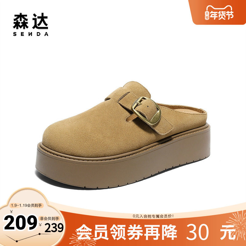 天美意复古厚底勃肯鞋包头半拖鞋女休闲单鞋2025秋季新款CHS33AH5