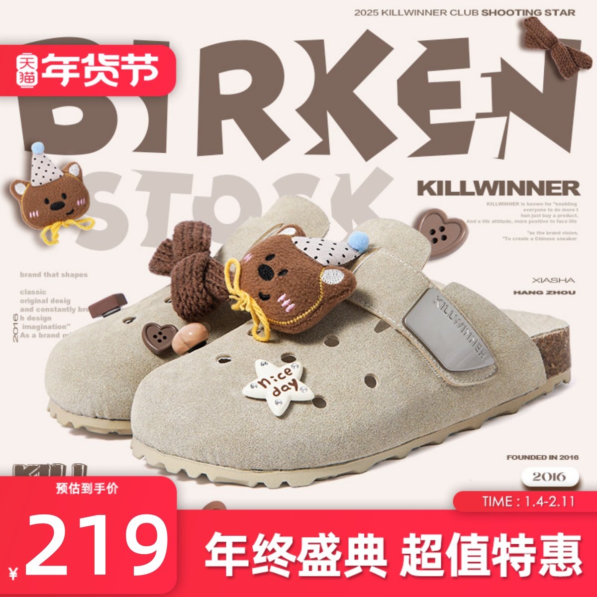 KILLWINNER 勃肯鞋 复古洞洞包头拖鞋 休闲外穿半拖通勤懒人鞋