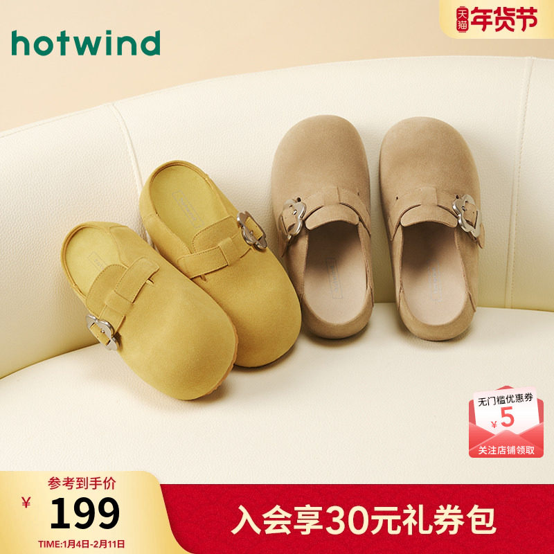 热风复古勃肯鞋女款2025年秋季新款户外包头半拖鞋厚底小个子女鞋