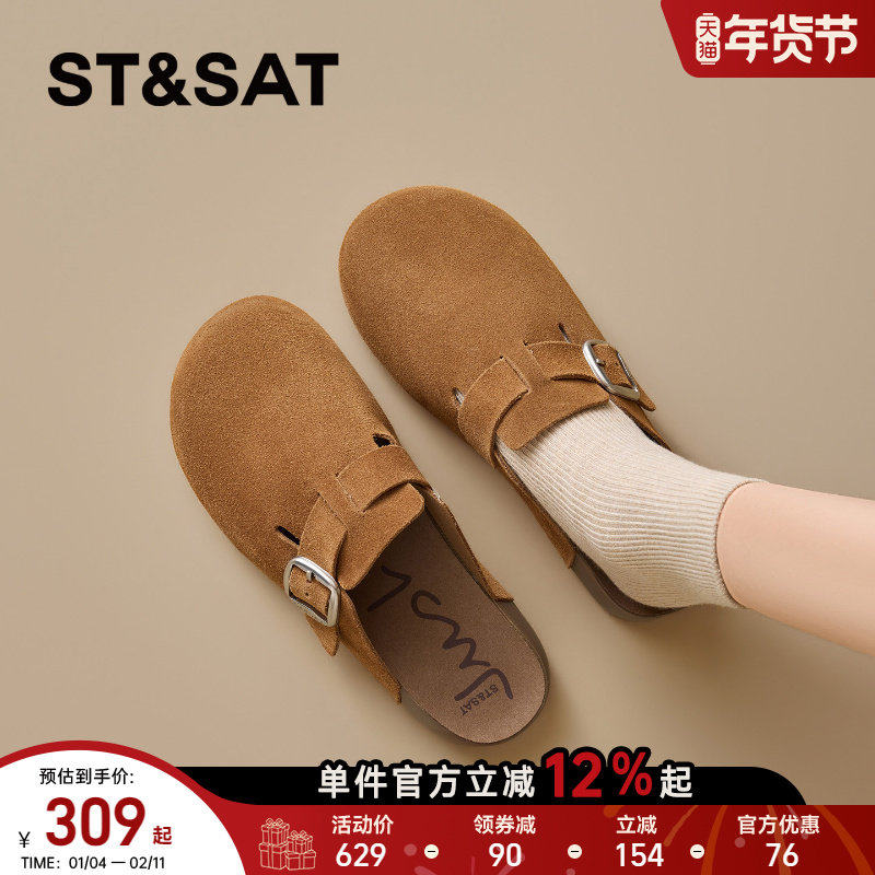 星期六平底勃肯鞋女2026年新款外穿复古休闲懒人一脚蹬包头半拖鞋