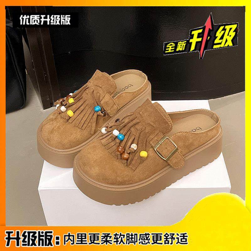 推荐厚底勃肯鞋女外穿秋冬2025新款流苏复古包头半拖鞋一脚蹬博肯
