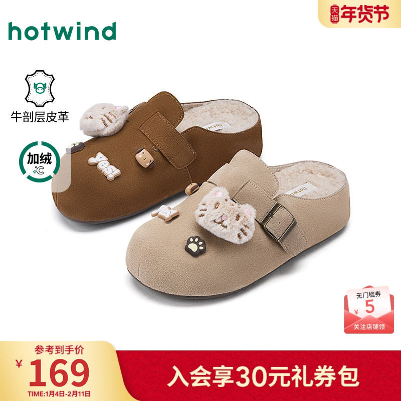 热风加绒勃肯鞋女鞋2025年冬季新款复古休闲半拖鞋百搭通勤包头拖
