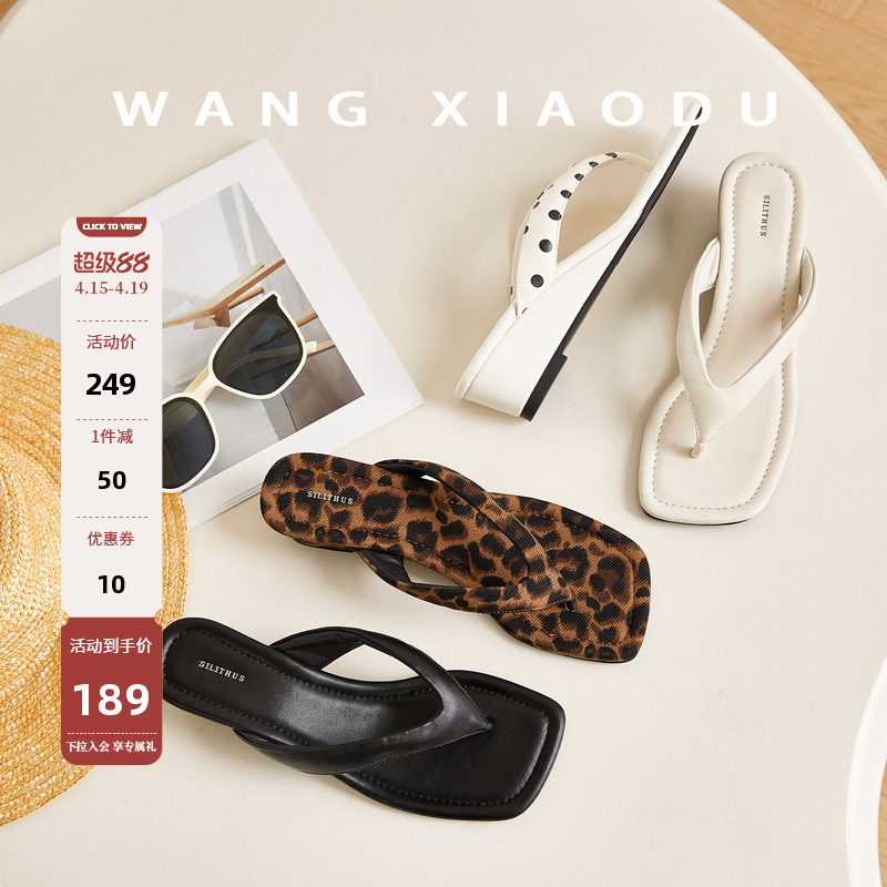 【王小毒】假日风情●5cm坡跟复古方头人字拖女外穿增高露趾拖鞋
