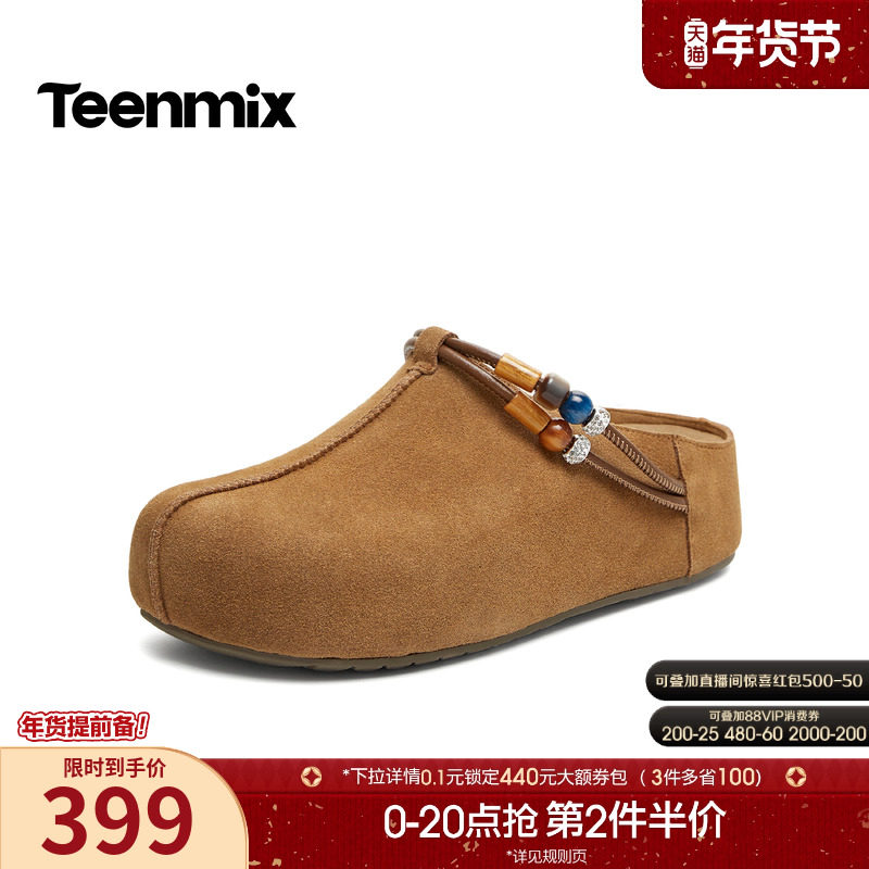 St&Sat/星期六冬季保暖勃肯鞋一脚蹬厚底包头半拖鞋女SSD4110CLS