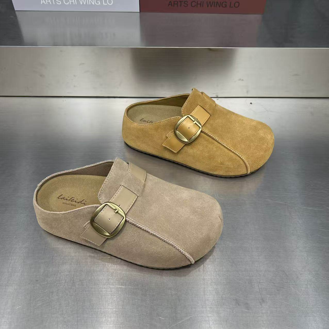 2026加厚真皮复古勃肯鞋女软木半包鞋博肯鞋增高女鞋单鞋女拖鞋