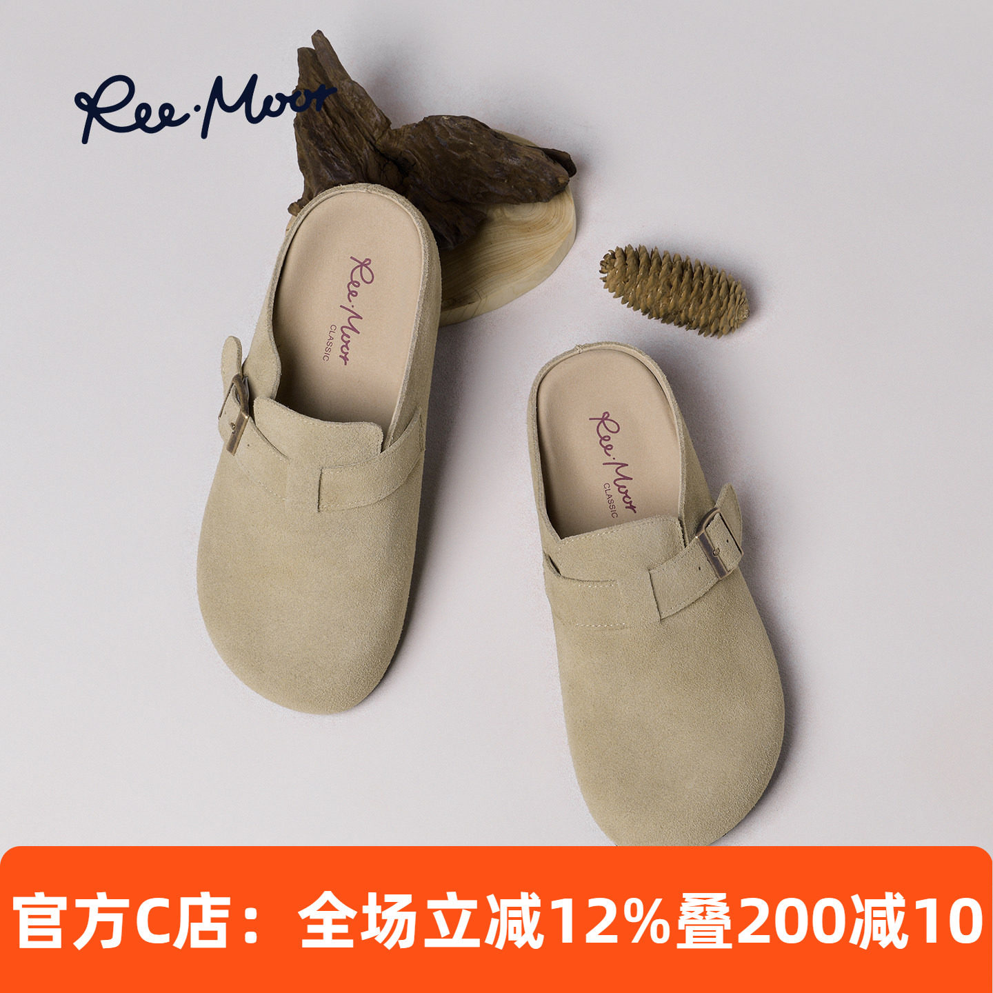 REEMOOR睿慕包头搭扣勃肯鞋女2026春夏新款半拖鞋外穿休闲懒人鞋